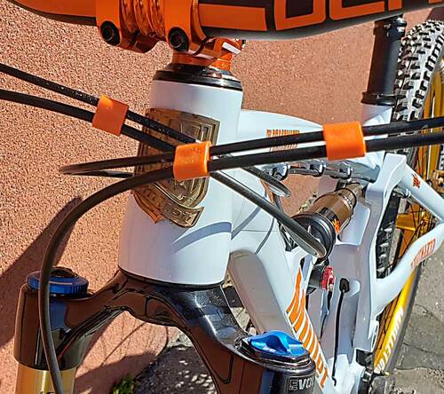 ブレーキケーブルやシフトケーブル、ドロッパーポストのケーブルをスッキリまとめる便利なパーツです。片方の穴がブレーキケーブル、もう一方がシフトケーブルの径になっています。ケーブル同士の当たる音やケーブルの折れを防止します。