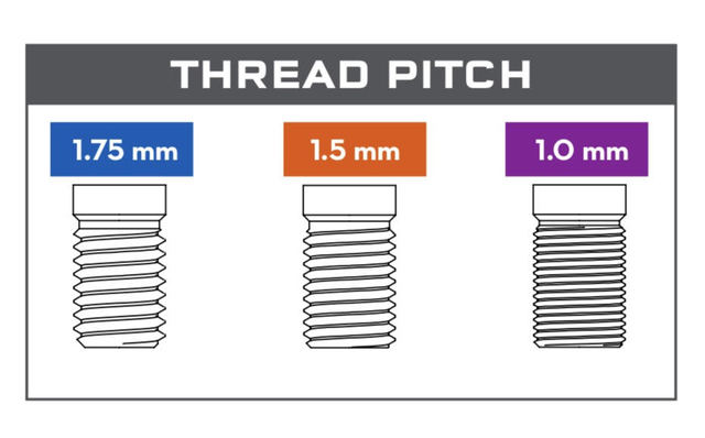 ネジ山のピッチは以下の表を参照ください。スマホやプリントアウトで100%にしてお手持ちのアクスルのピッチと比べて見てください。